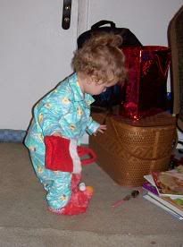 Christmas was long and busy. I would like to say that next year, we are boycotting travel, but I don't see that happening. Between the hours of 10 and 4, we had hit our fourth and final house. That is way too much. You know that it's bad when you are wishing the rain was snow so that you had a reason to just go home. It took us 3 trips to unload all of Emma's loot. She is loving Christmas! LOL! She got the hang of it, but the paper couldn't touch the ground. It was quite cute. She would hand the scraps to someone and then rip some more only to hand the paper off.